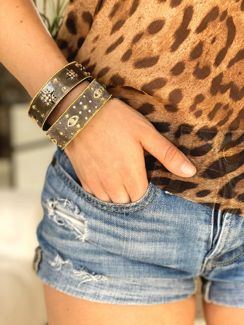 - Take your outfit to the next level with thisĀ beautiful black & gold cuff.