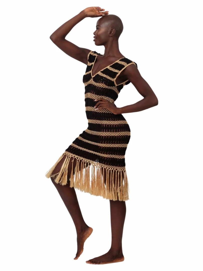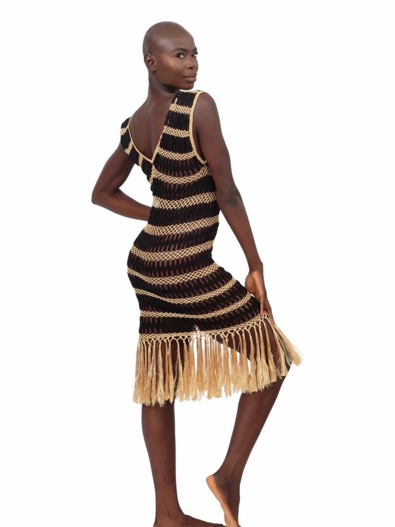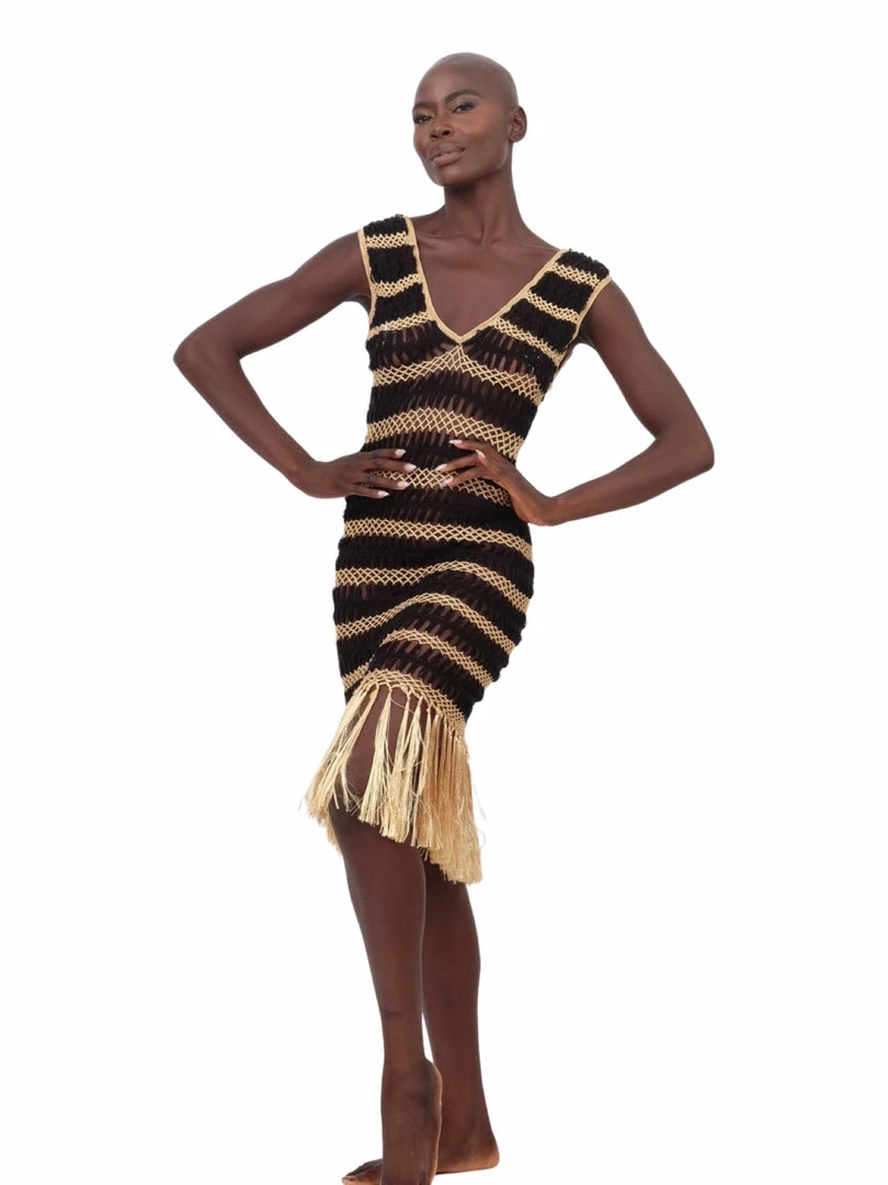 - Effortlessly chic, this woven dress is the perfect choice for vacationing, brunches with friends, and sexy dinner dates! Wear as a bathing suit cover, or pair with a bodysuit to wear out.