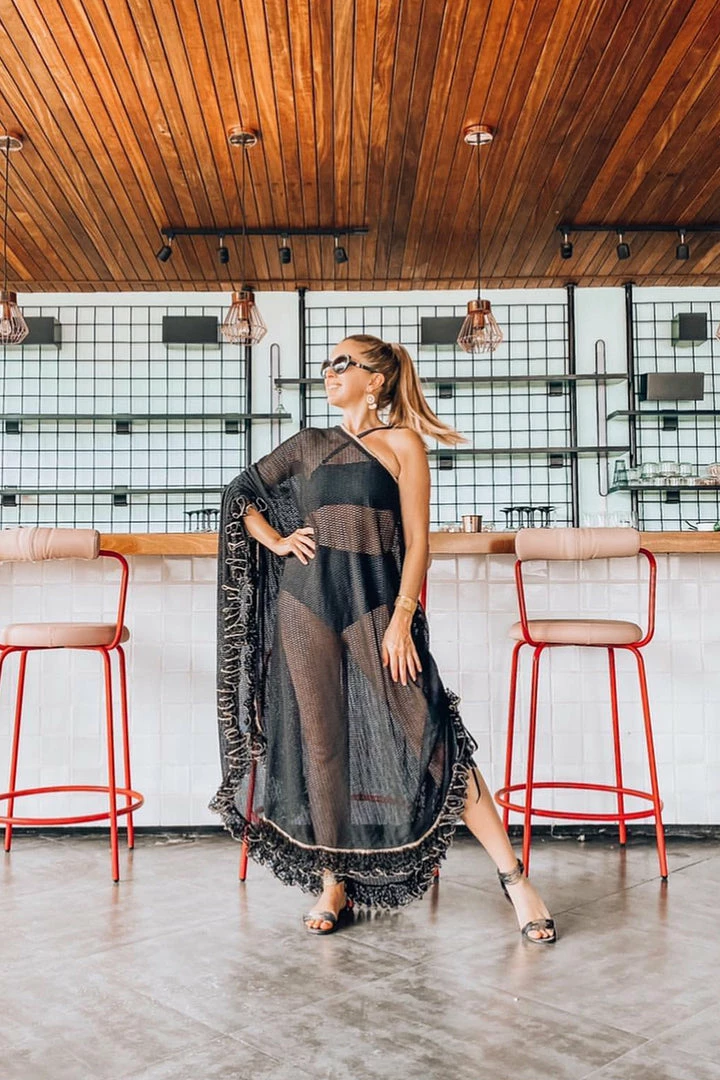 - This sexy cover up can be worn two ways! Wear like a poncho or slip one arm out.