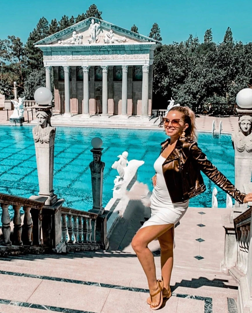 - Model Measurements White Background: Height 5’9″, Bust 32″, Waist 25″, Hips 36″