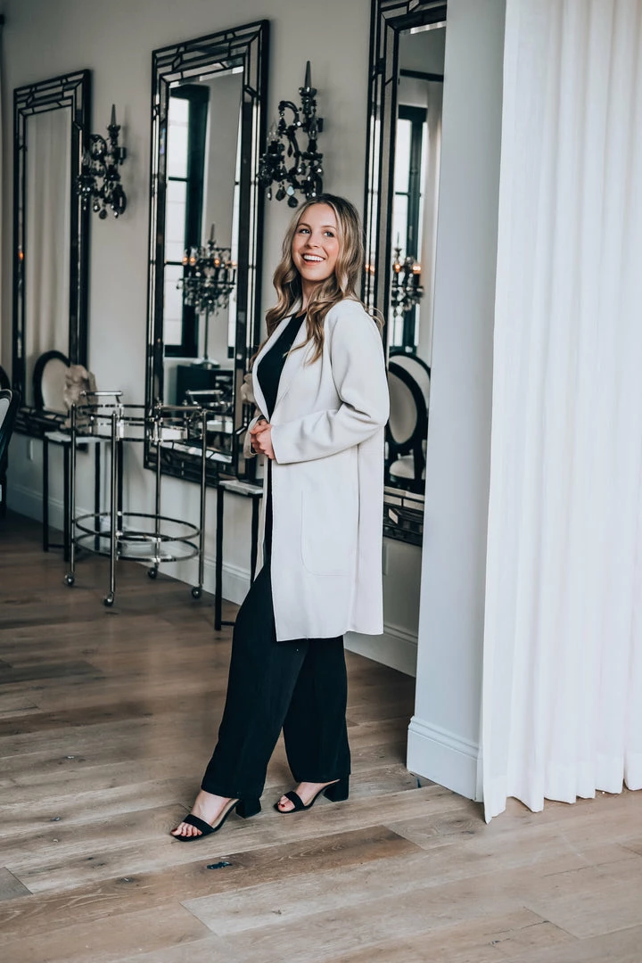 - This coat is chic and has a slightly oversized fit. Pair with jeans and tee for a casual look, or dress it up with slacks and a blouse.