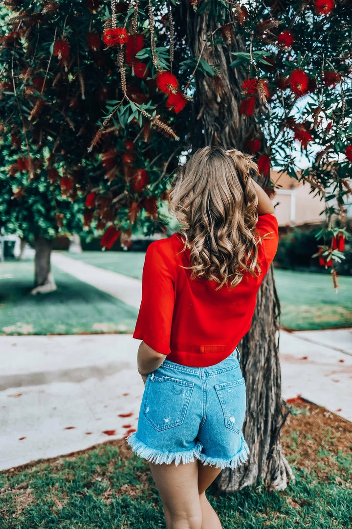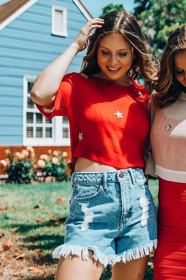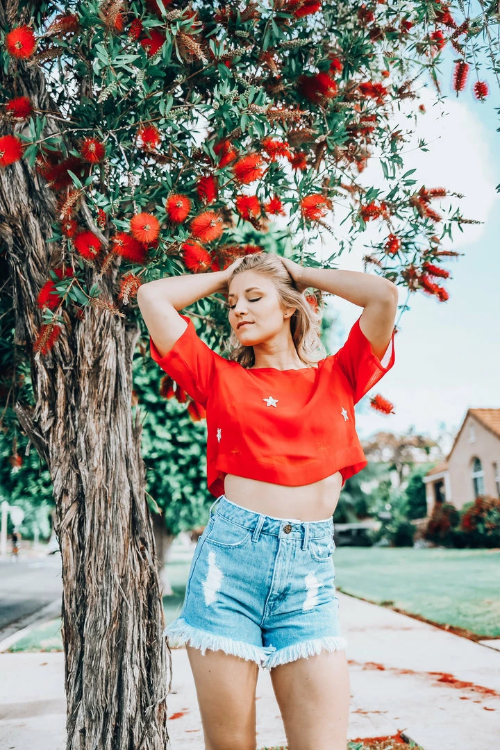 EastNWest Label Tops Star Mesh T-Shirt Red