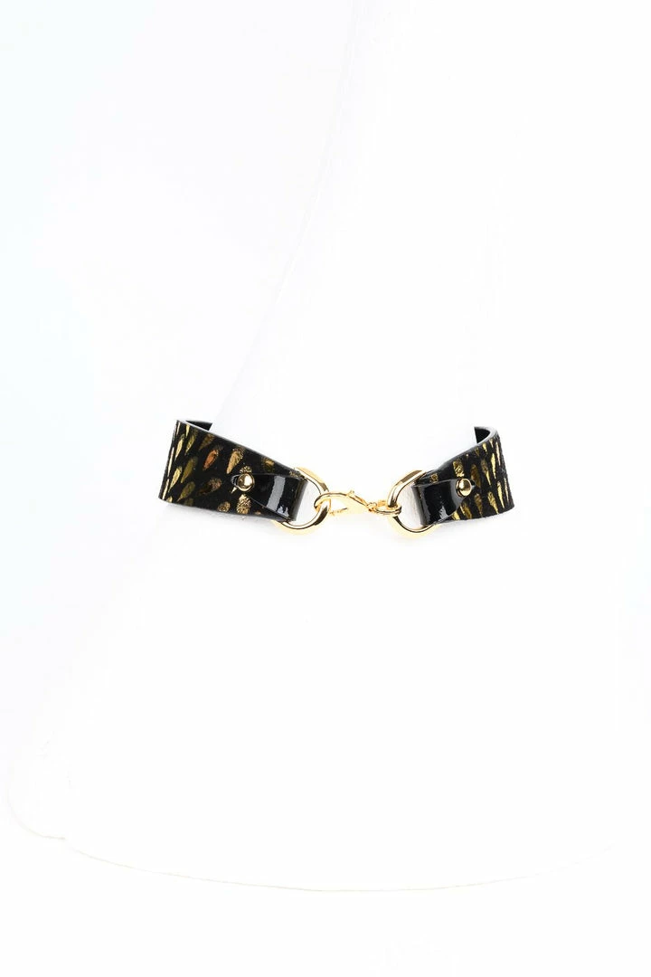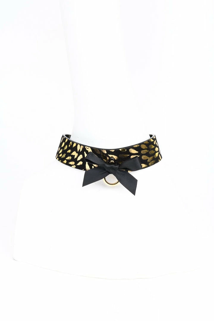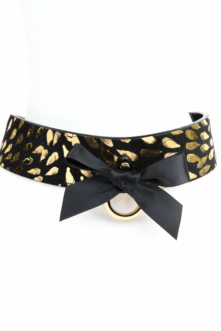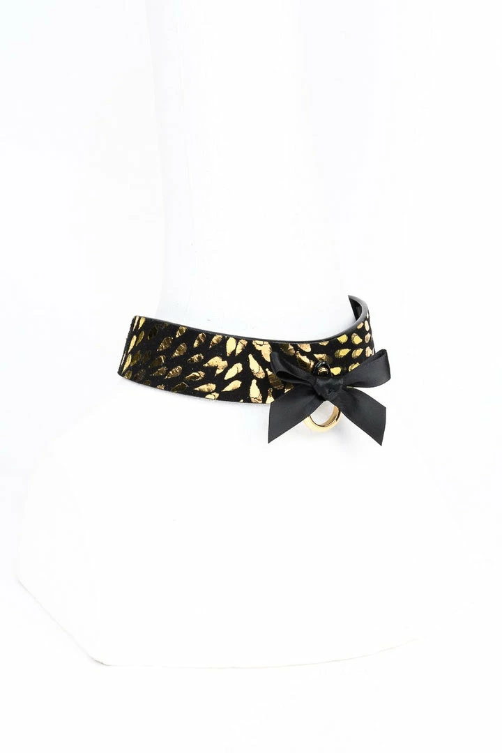 - Gold Foil Embossed Black Suede & Black Patent Collar (approx 38cm)
