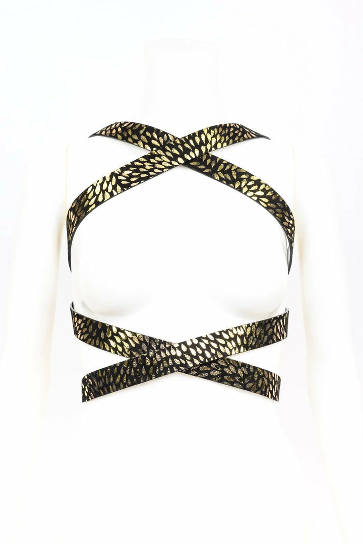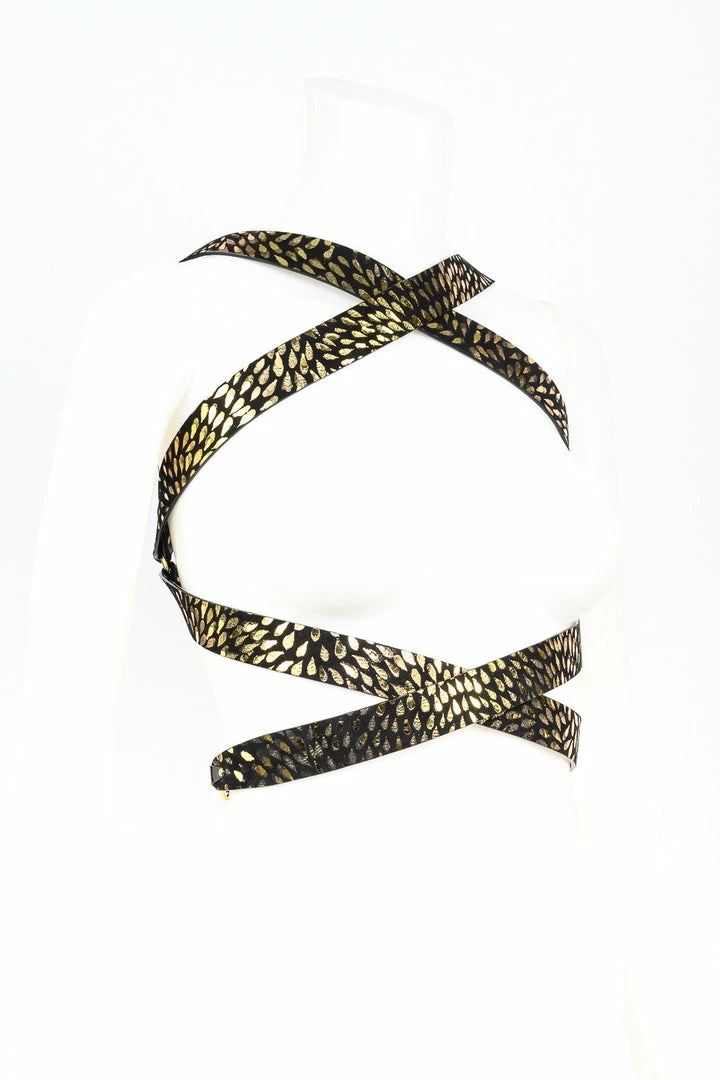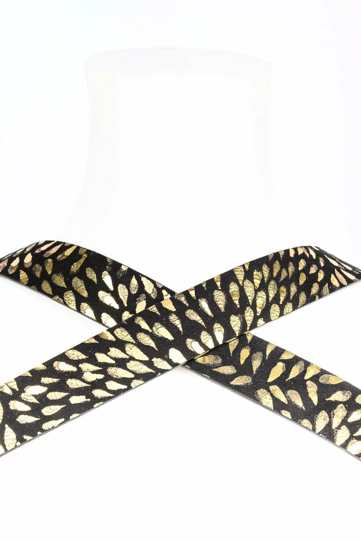 - Italian Gold Embossed Black Suede & Black Patent Leather Straps