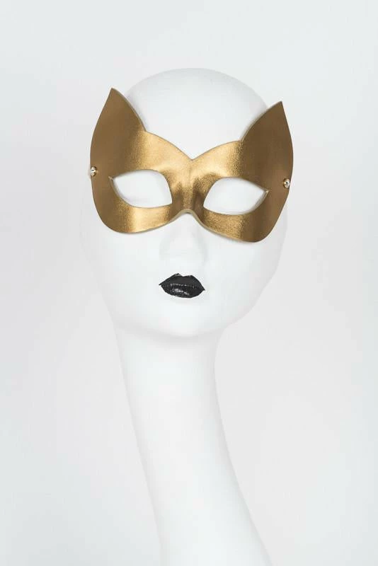 - Metallic Bronze Gold Leather Sculpted Kitten Mask