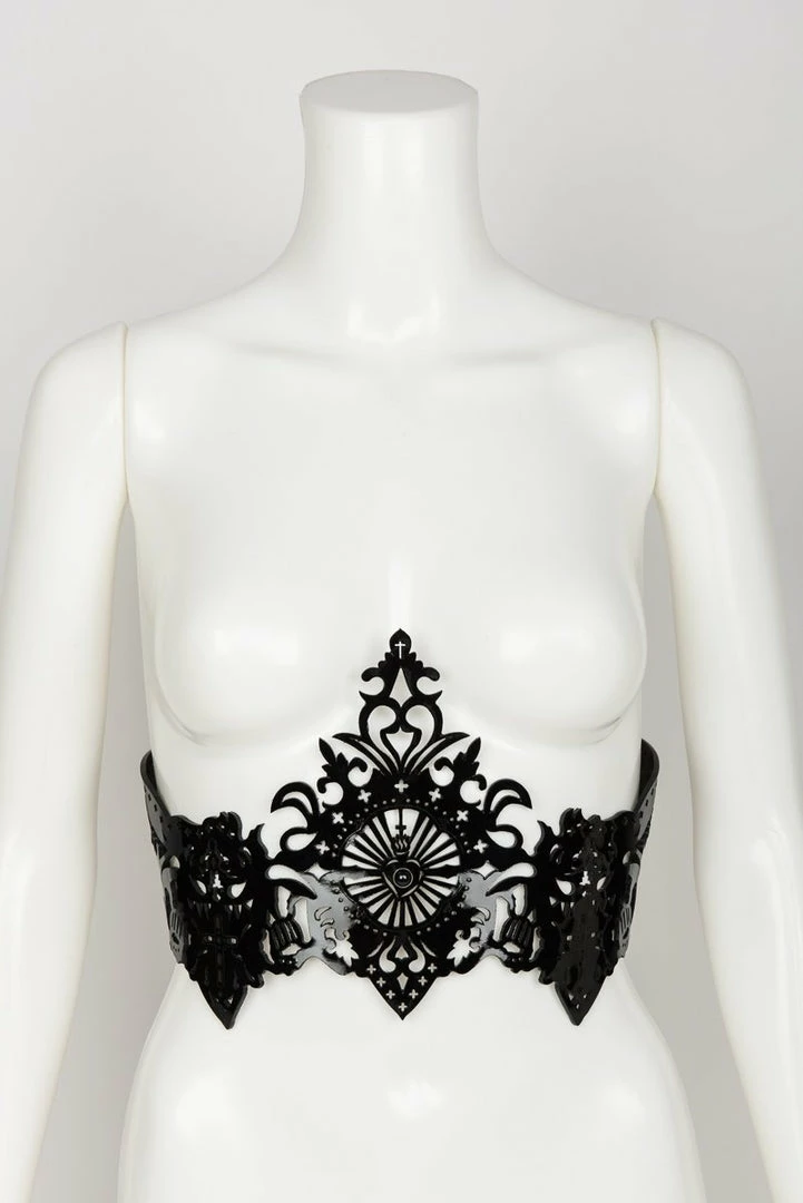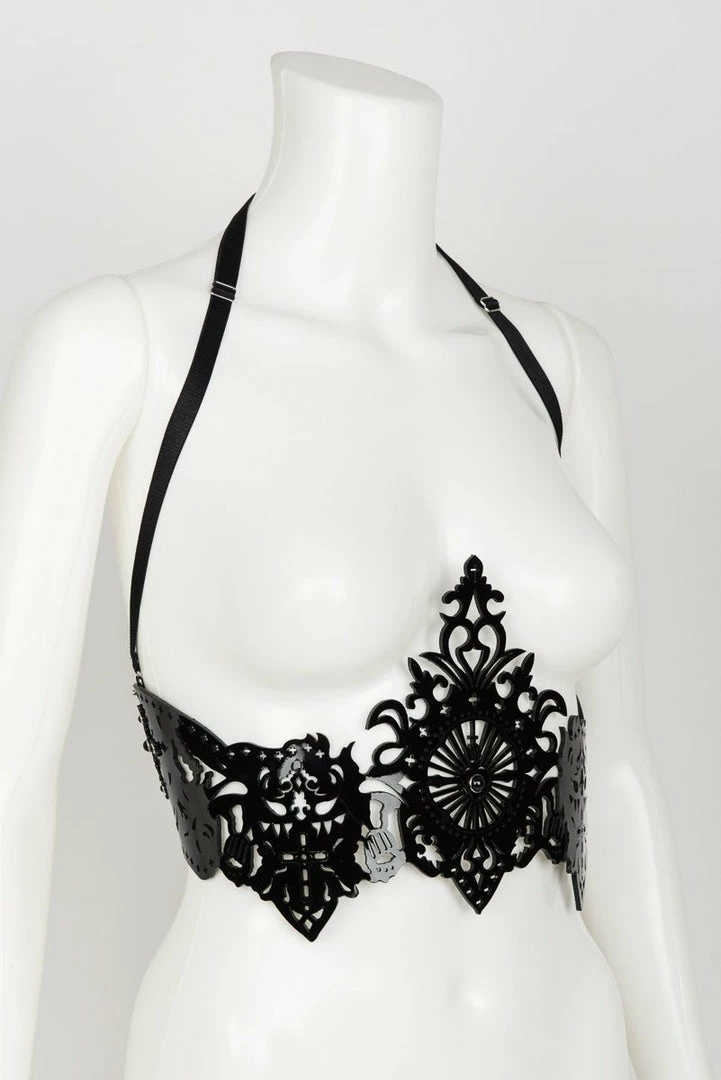 - Custom Laser Cut Black Shiny Patent Leather Bodice