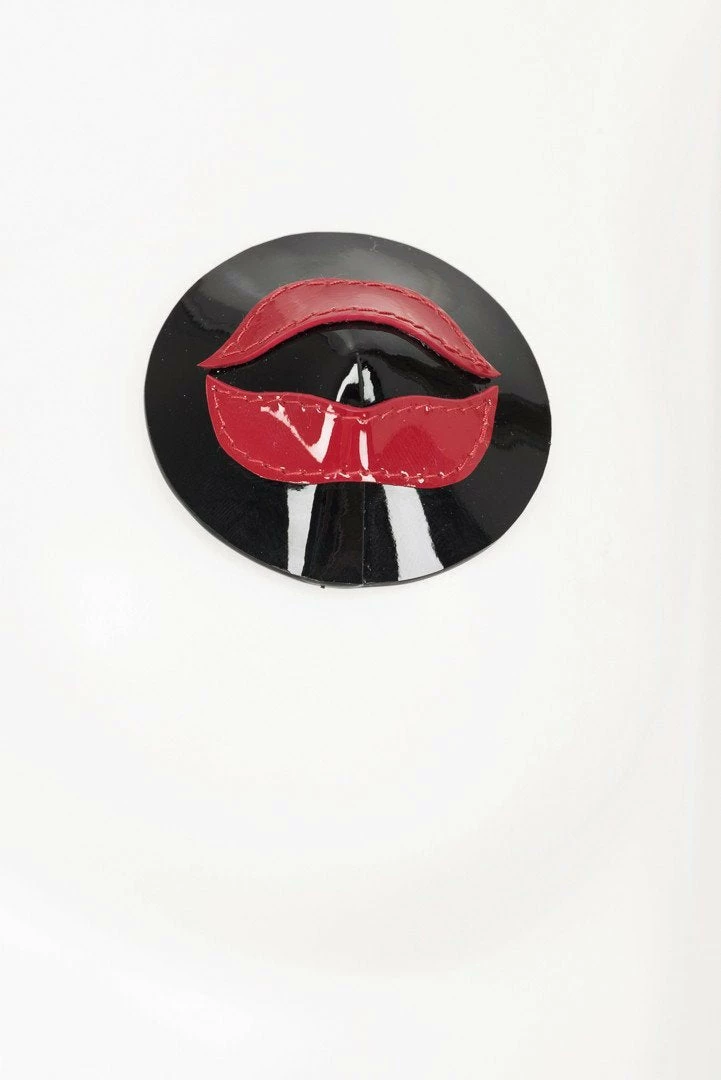 - Laser Cut Red Patent Stitched leather Lip Detailing