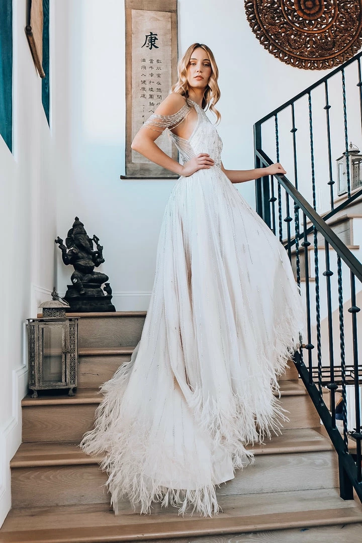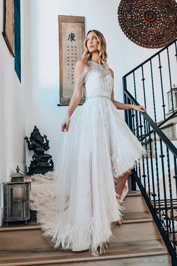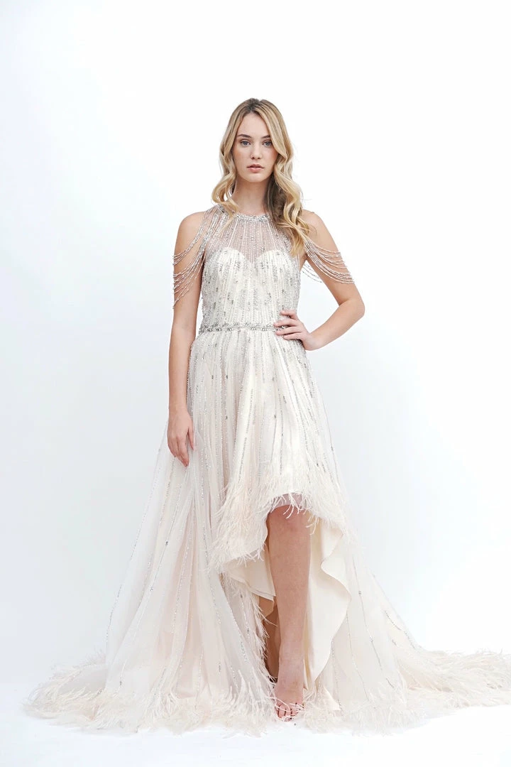 - Beaded Detailing & Draped Mock SleeveÂ