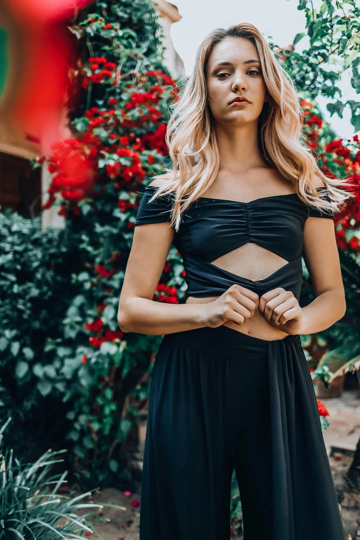 - Model Measurements: Height 5’9″, Bust 32″, Waist 25″, Hips 36″
