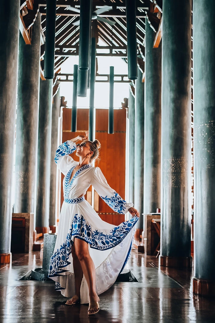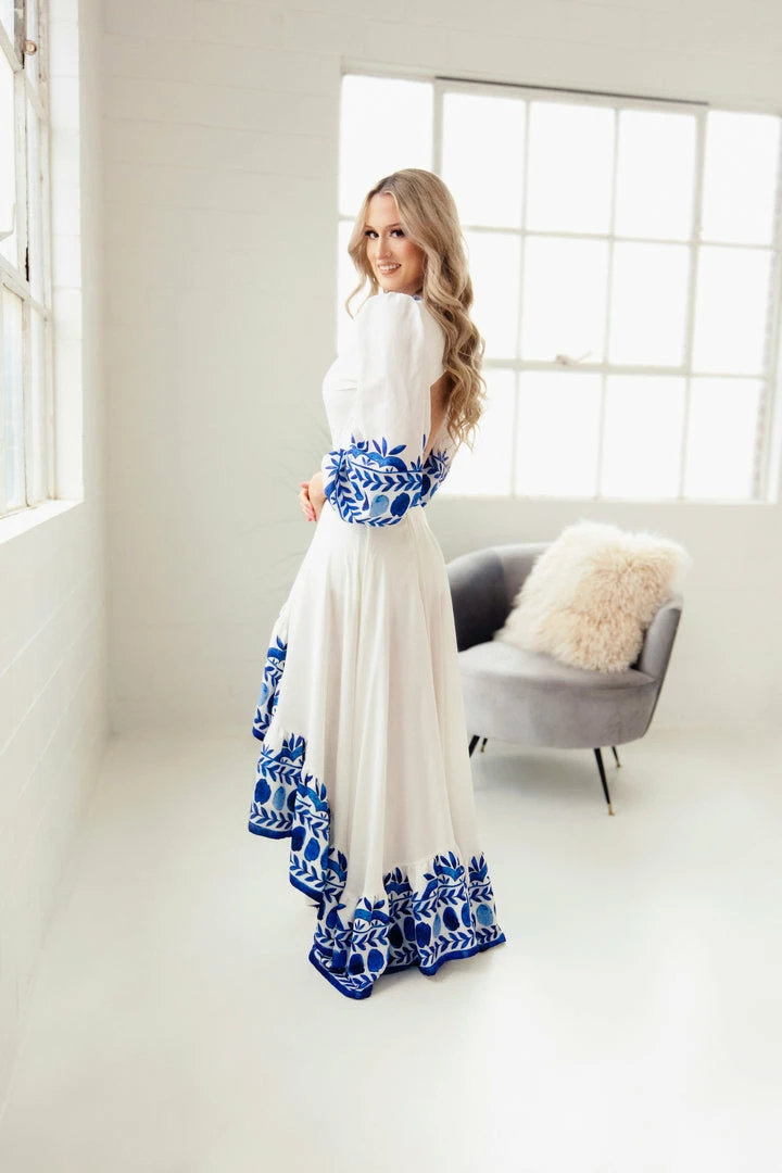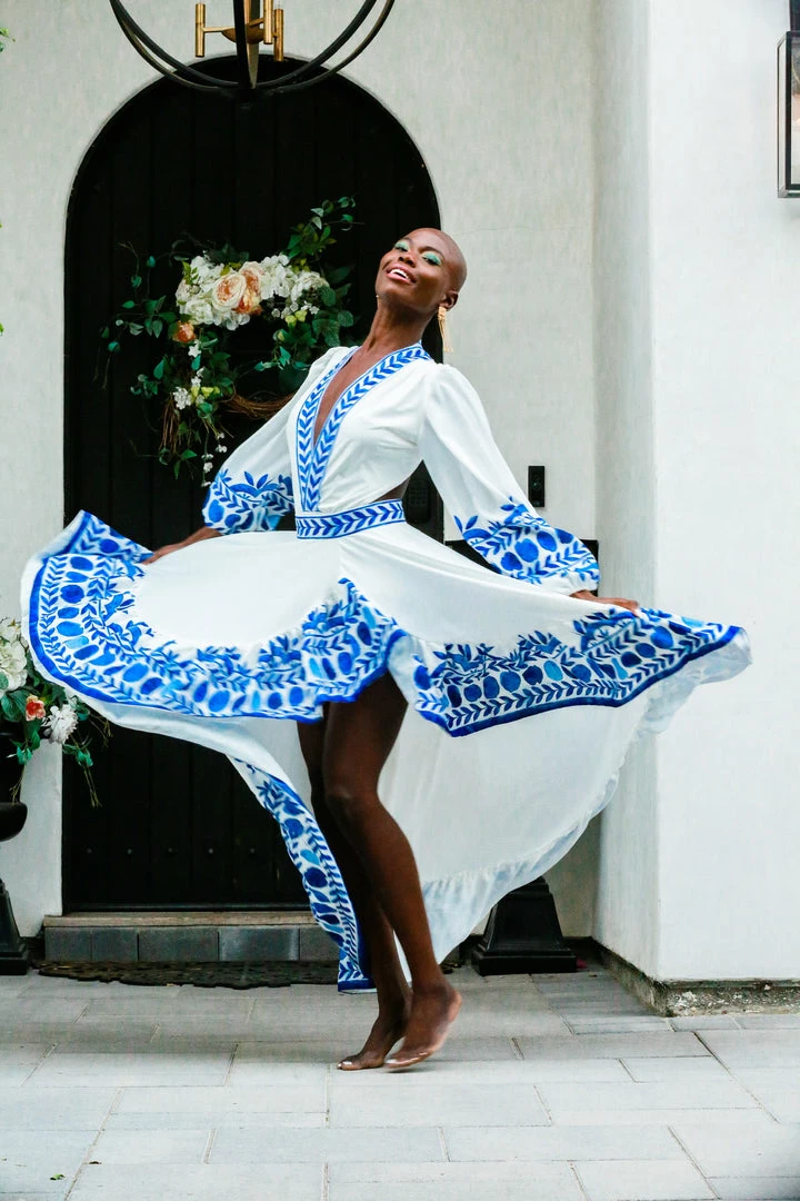 - Model Measurements on White Background:Â Height 5’8″, Bust 31″, Waist 24″, Hips 35″