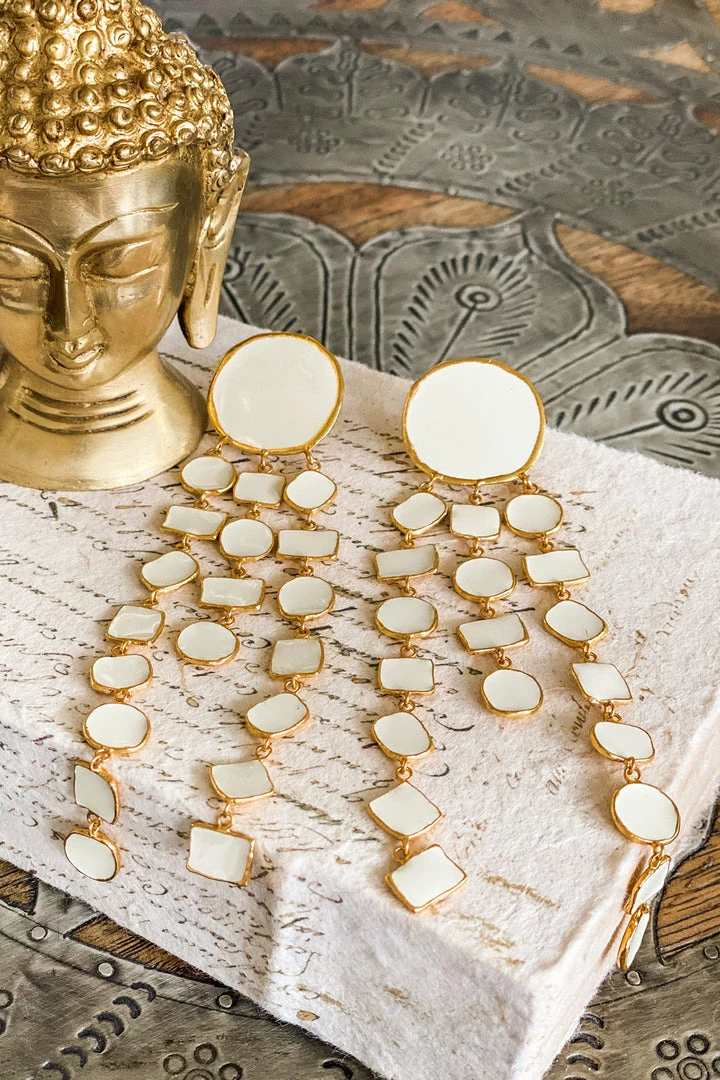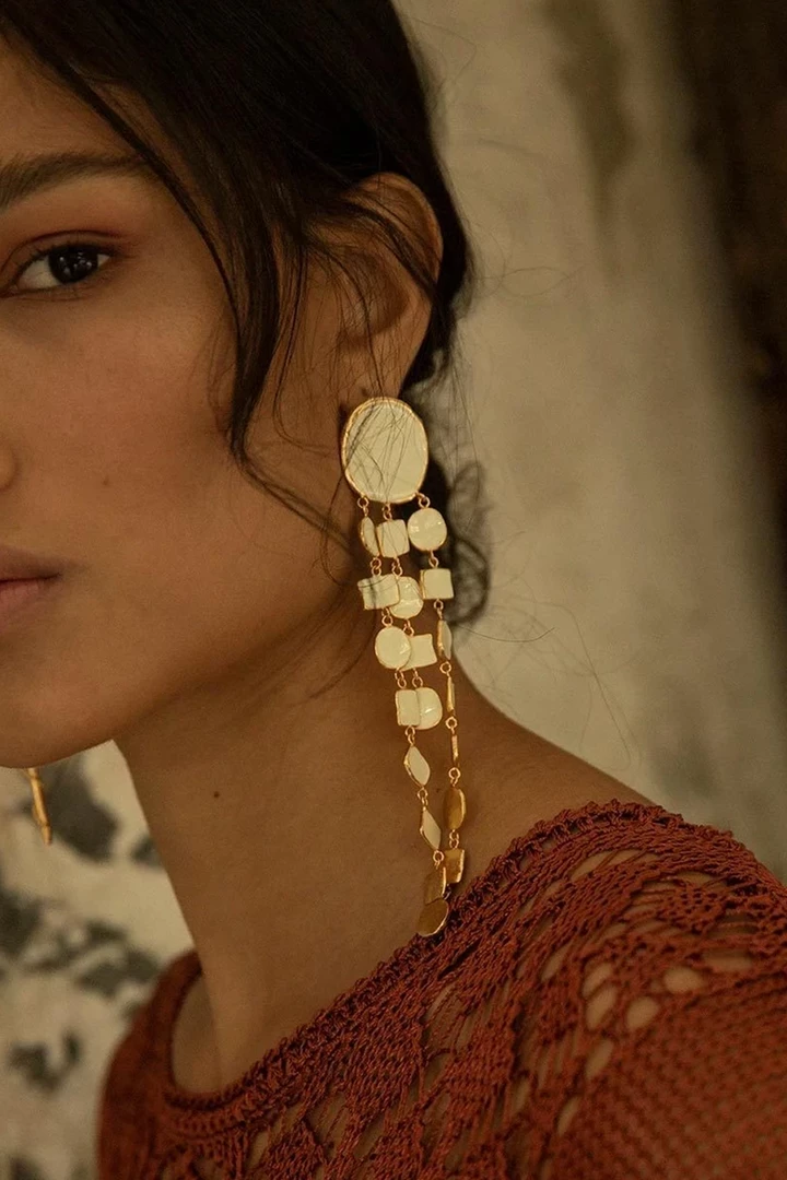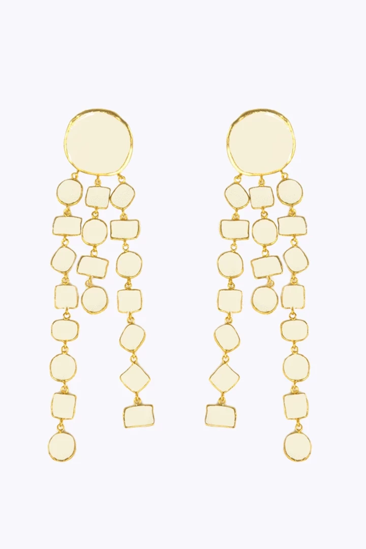 - Take your outfit to the next level with this pair of gorgeous gold & beige earrings.