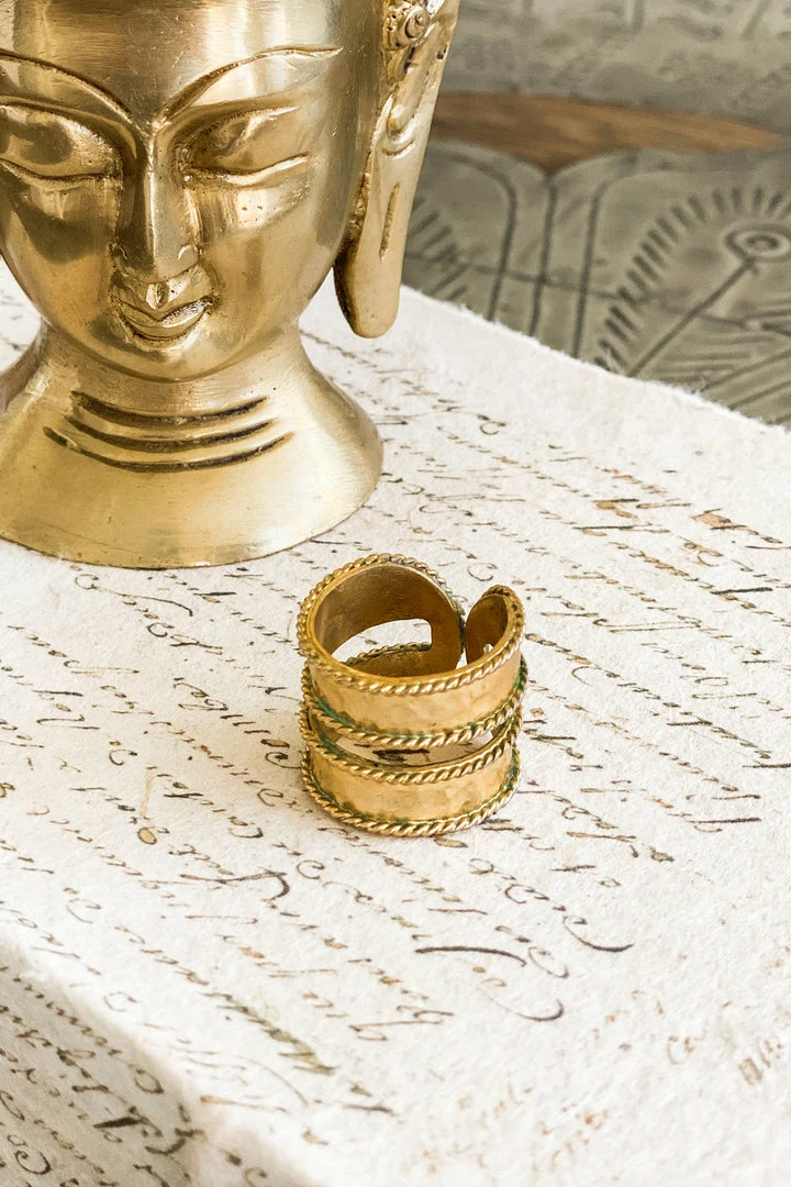 - Take your outfit to the next level with this gold stacked ring.