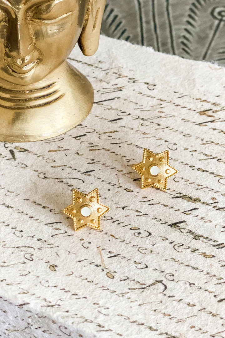 - Take your outfit to the next level with this pair of gorgeous gold &Â beige earrings.