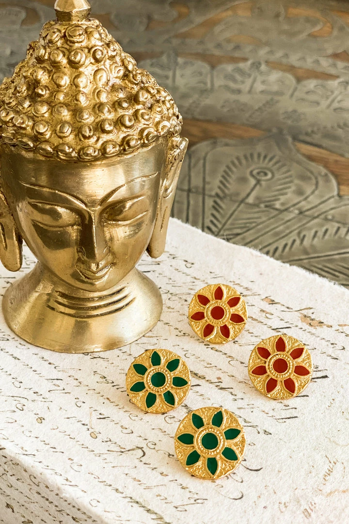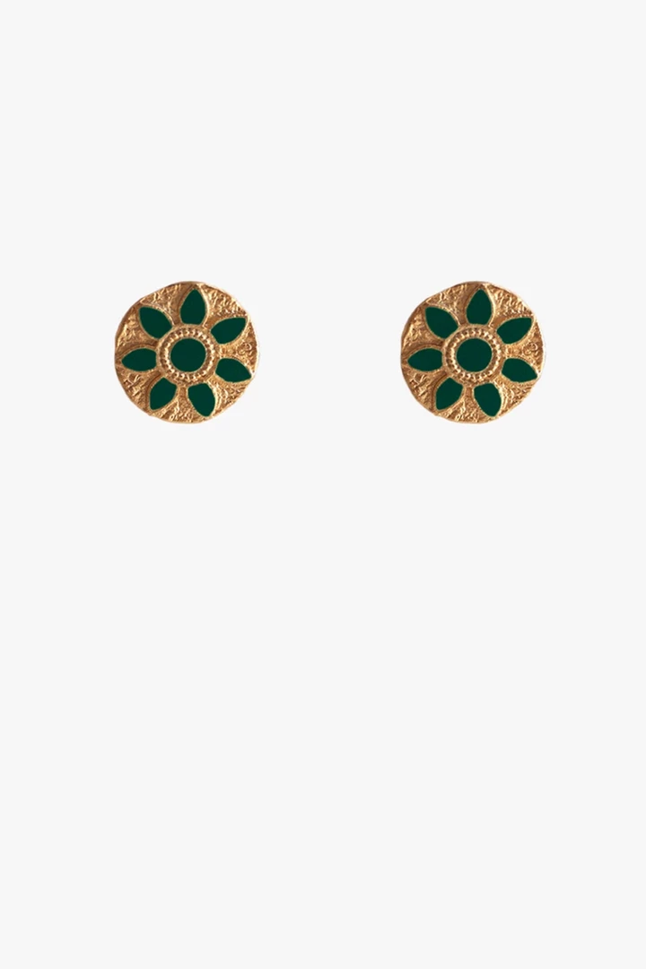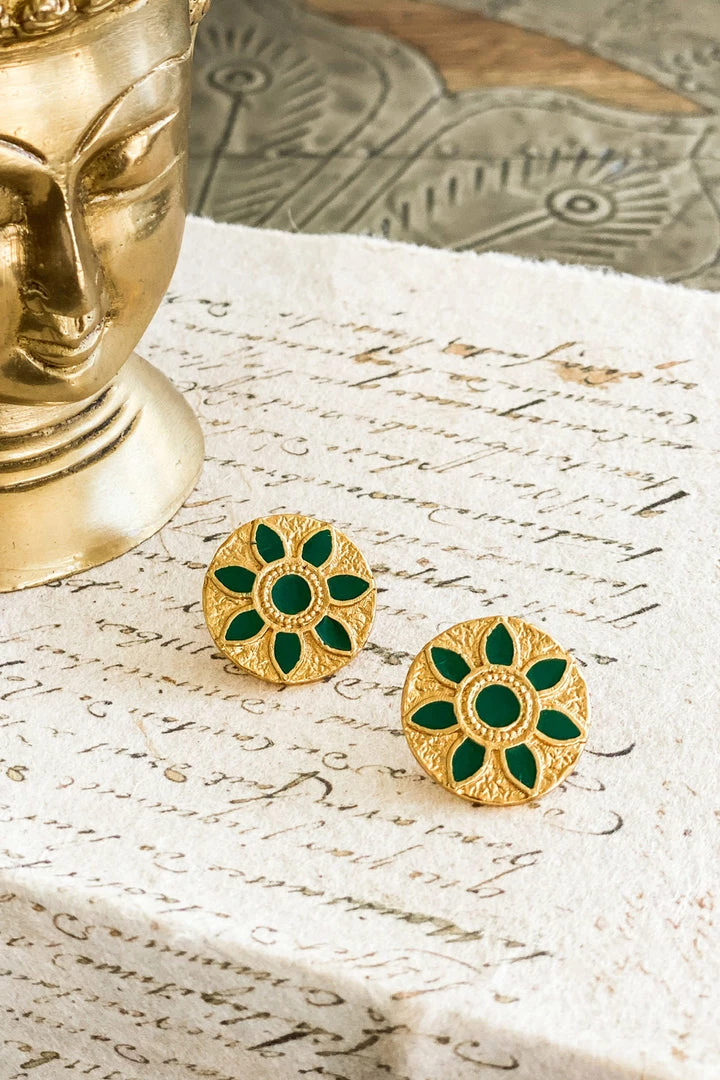 - Take your outfit to the next level with this pair of gorgeous gold & green earrings.