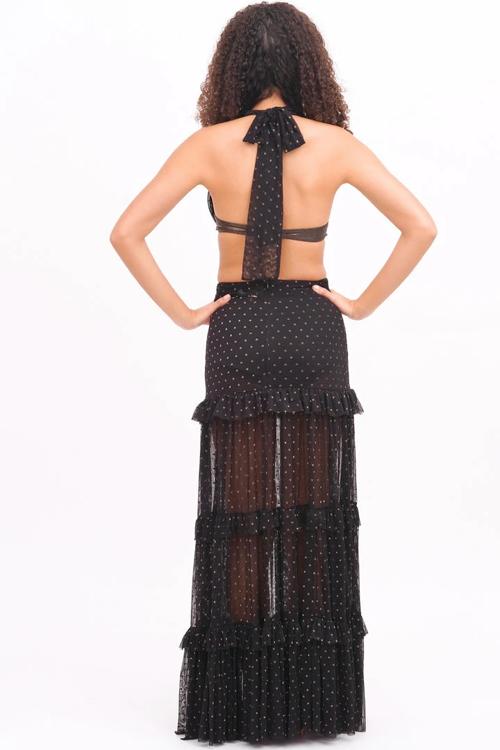 - Model Measurements: Height 5’8″, Bust 32″, Waist 25″, Hips 36″
