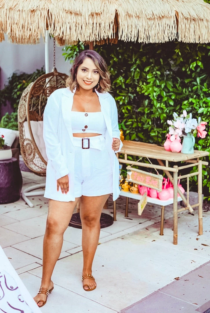 - White Backdrop Model Measurements: Height 5’5″, Bust 32″, Waist 26″, Hips 32″