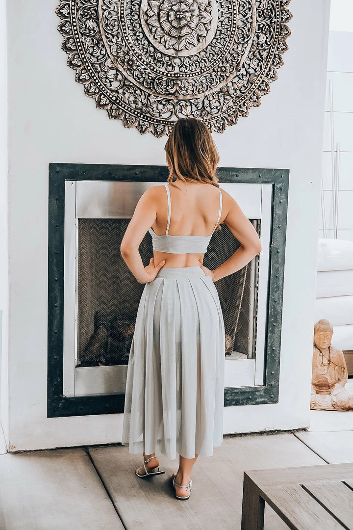 - Super sexy midi length skirt that pairs perfectly with a cropped top!