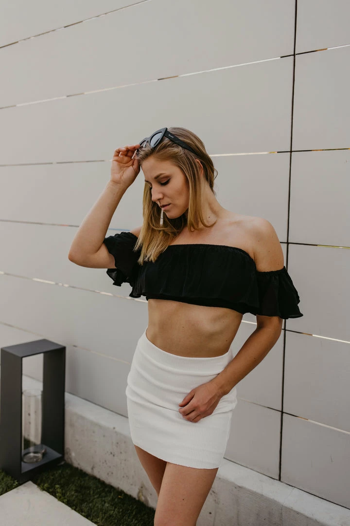 - Off the shoulder top with elastic band