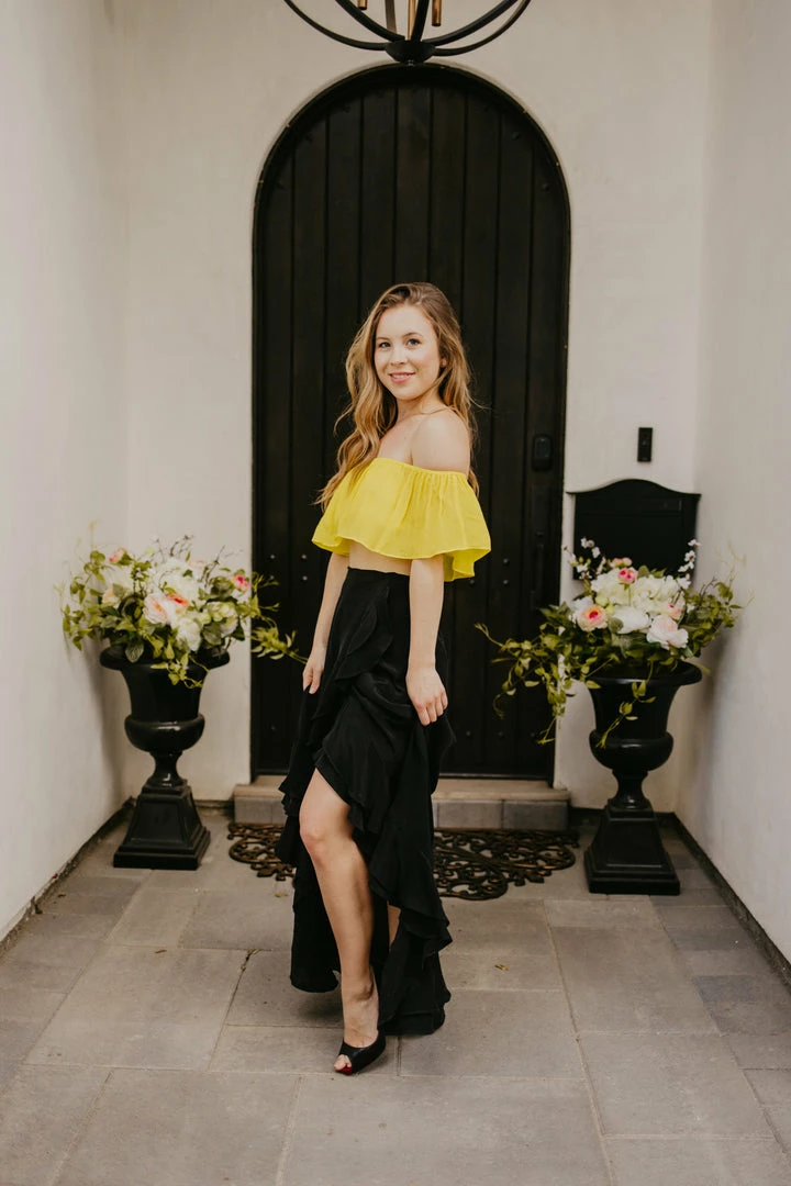 - Model Measurements: Height 5’3″, Bust 32″, Waist 24″, Hips 29″