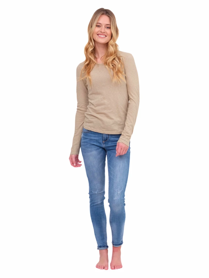- This will become your go-to long sleevetee! Soft and comfortable, this lightweight top pairs well with your favorite jeans or skirt.Â