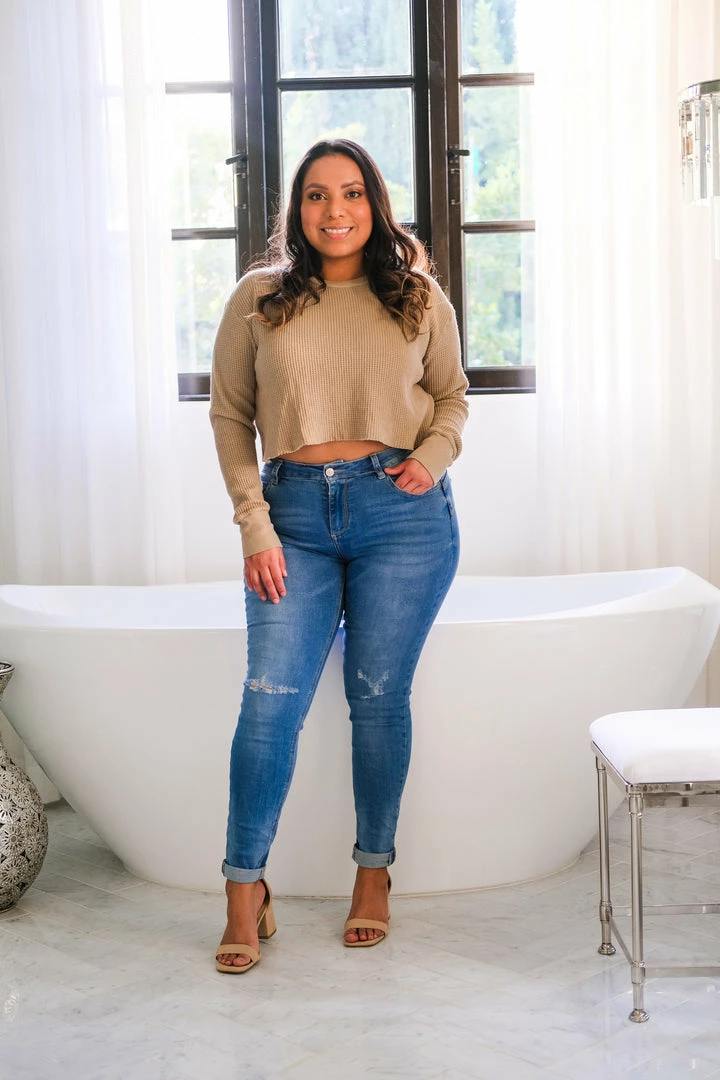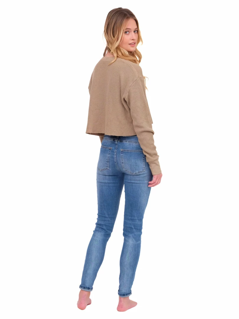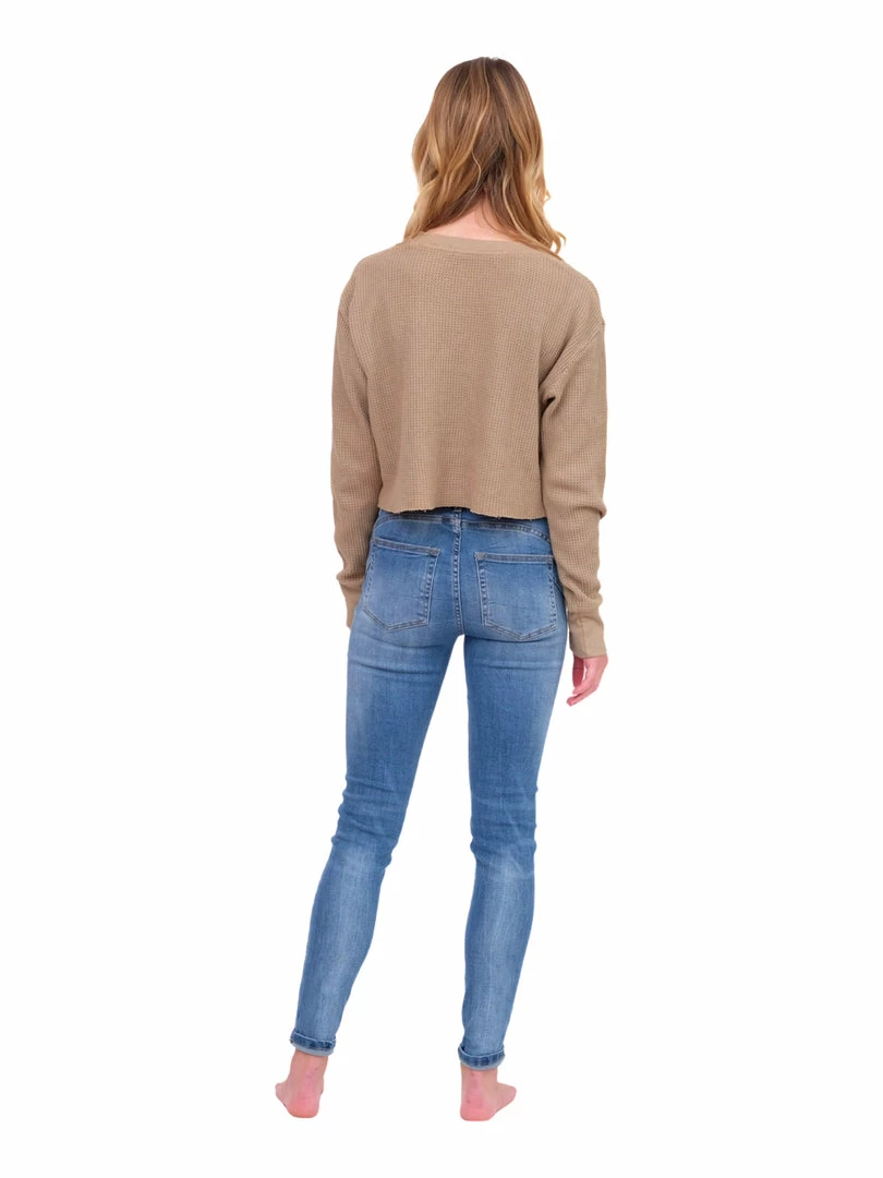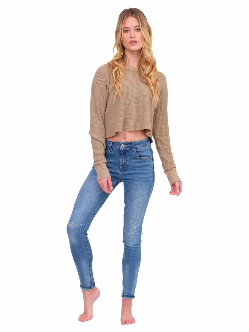 - This will become your go-to long sleeve top! The cropped fit is figure flattering, and the waffle knit is perfect for the Fall season.