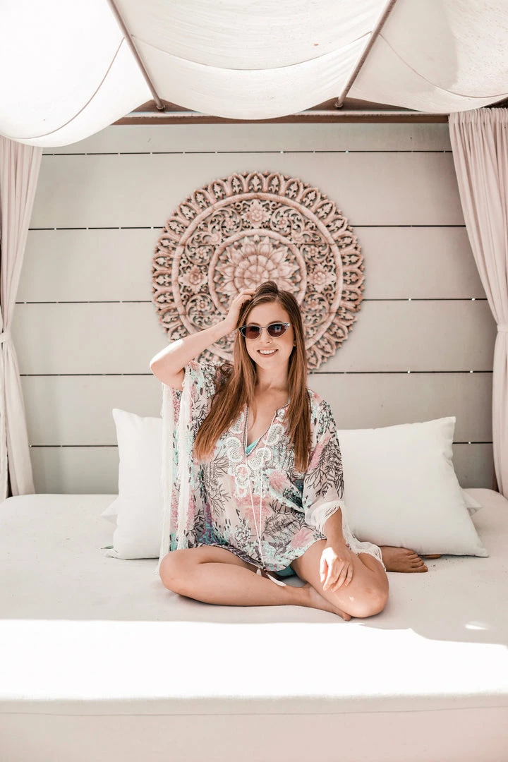 - Model Measurements White Background: Height 5’9″, Bust 32″, Waist 25″, Hips 36″