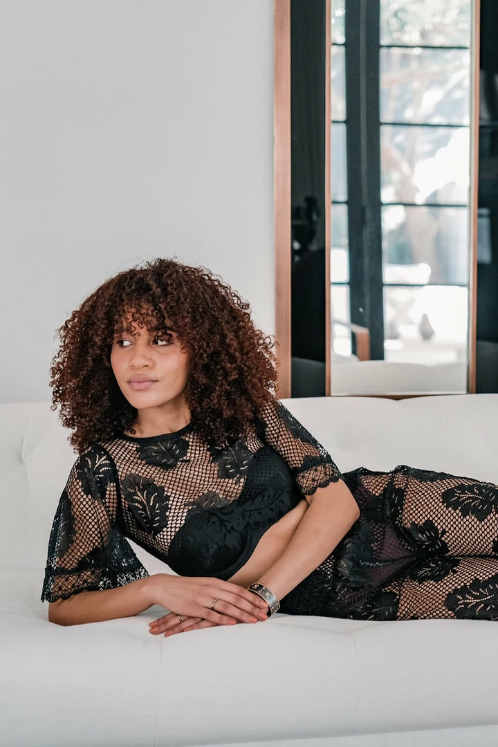 - Model Measurements: Height 5’8″, Bust 32″, Waist 25″, Hips 36″