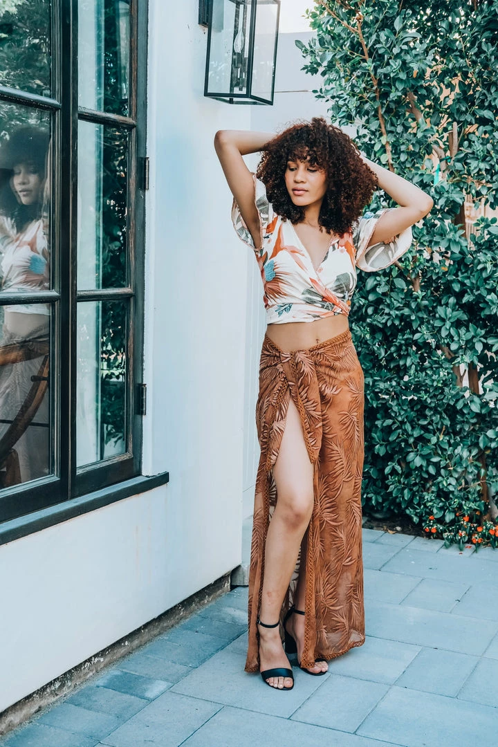 - Model Measurements: Height 5’8″, Bust 32″, Waist 25″, Hips 36″